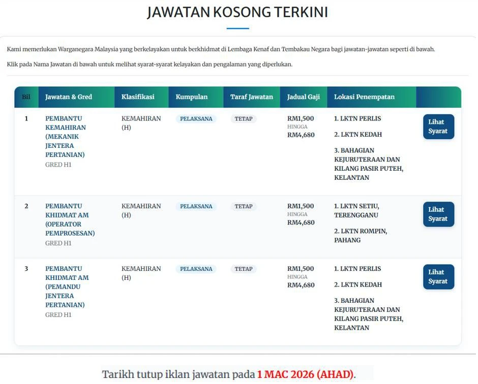 📋 Jawatan Kosong Lembaga Kenaf Dan Tembakau Negara (LKTN) 2026