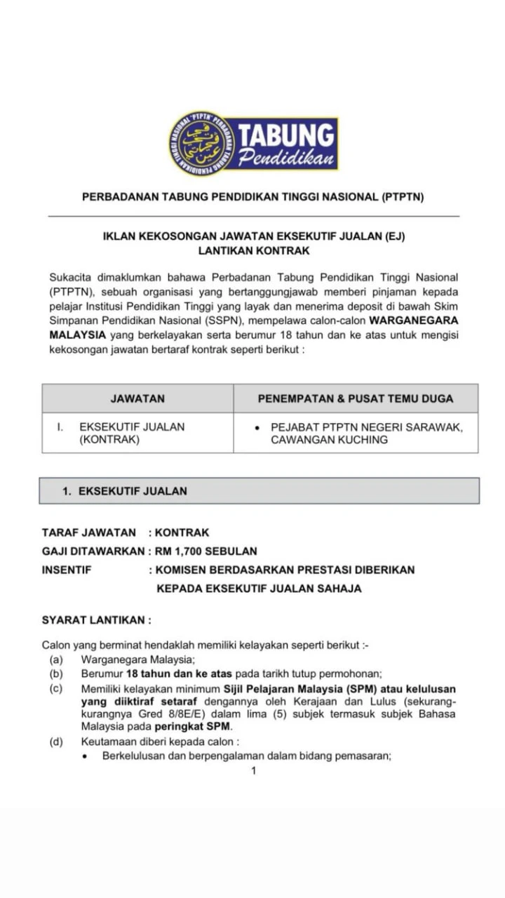 📋 Jawatan Kosong Perbadanan Tabung Pendidikan Tinggi Nasional (PTPTN) 2026