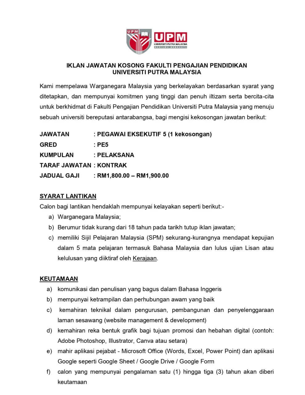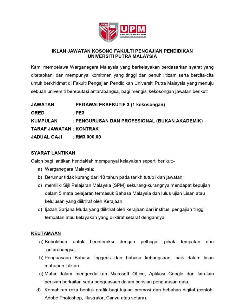 📋 Jawatan Kosong Universiti Putra Malaysia (UPM) 2026