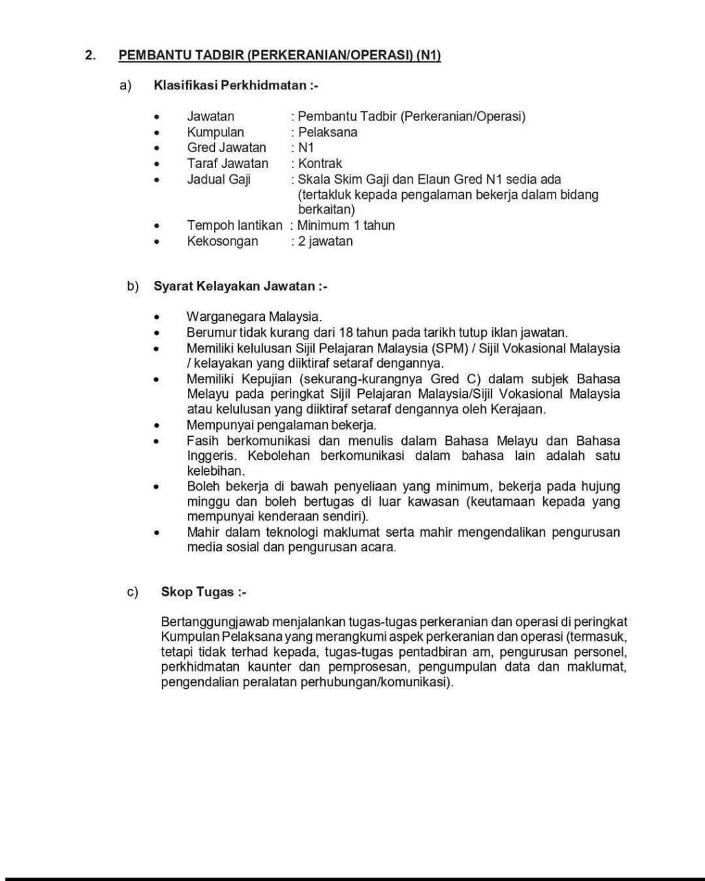📌 Taraf Pelantikan: Kontrak. Tempoh kontrak dan faedah adalah tertakluk kepada syarat perkhidmatan agensi.