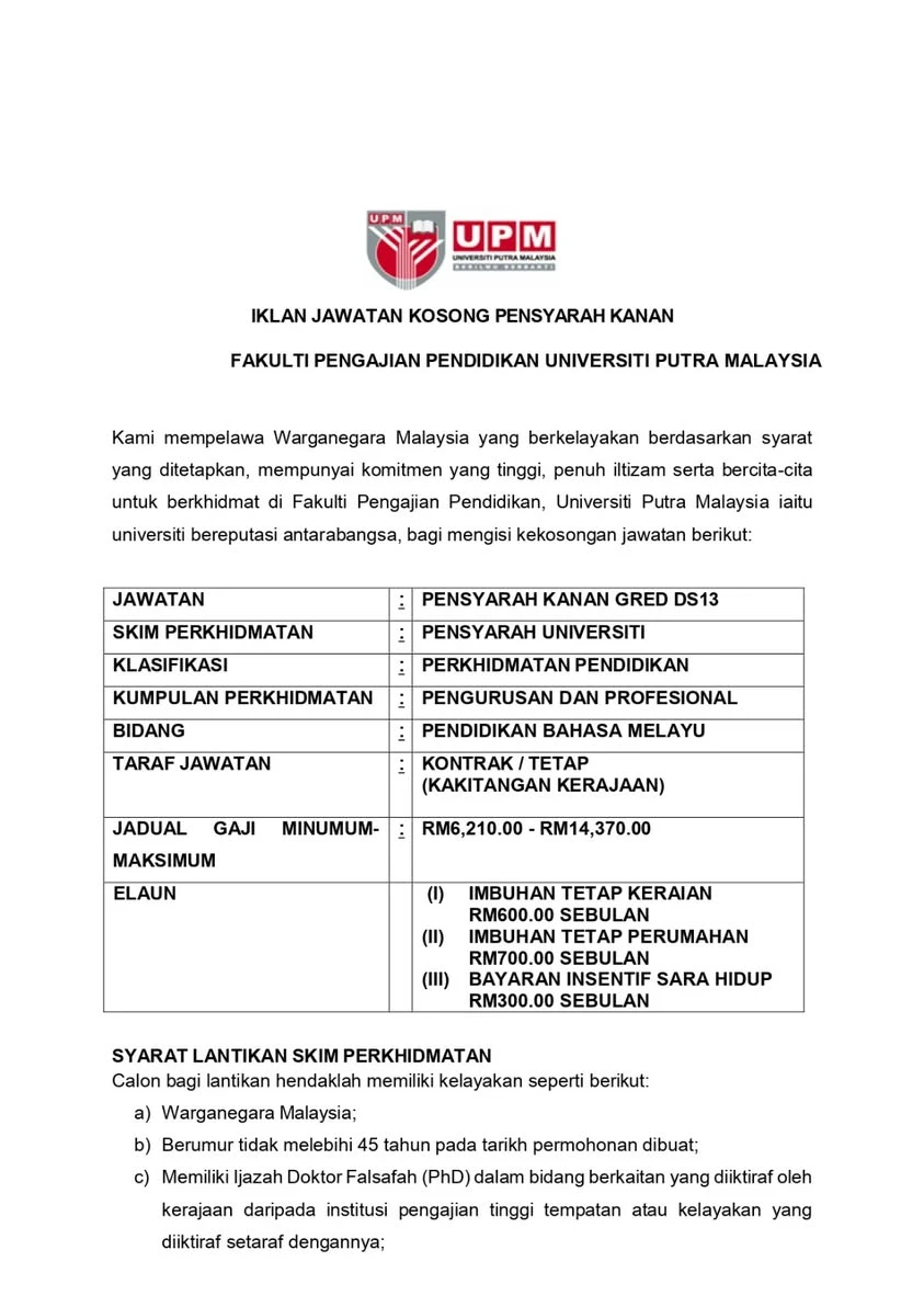 📋 Jawatan Kosong Universiti Putra Malaysia (UPM) 2026