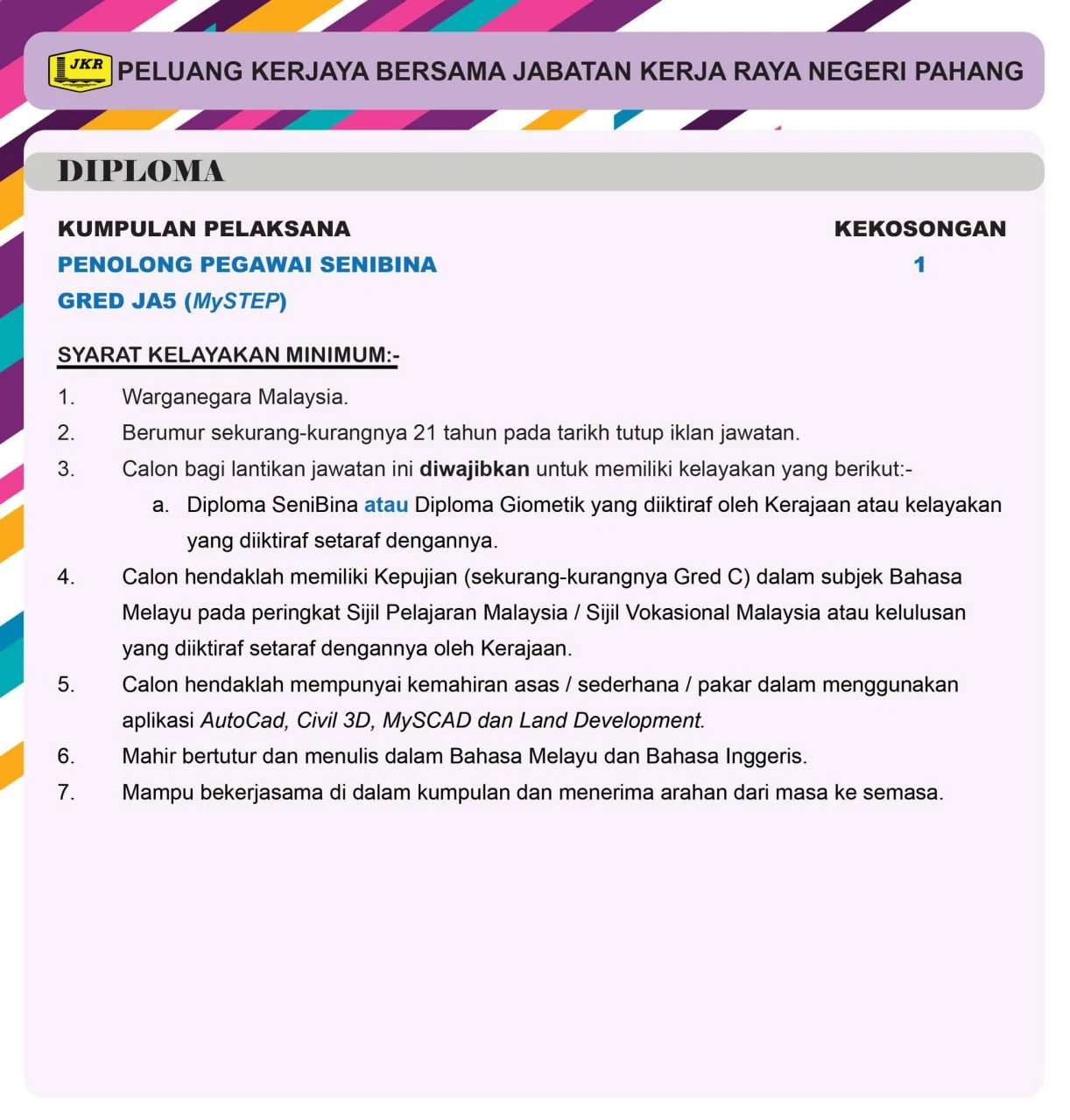 📋 Jawatan Kosong Jabatan Kerja Raya (JKR) 2026